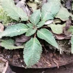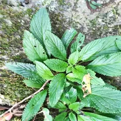 多年生草本。根状茎横走,深褐色,多须根。茎高12-20厘米,有时可达40厘米,淡褐色,具纵棱,疏生白色短柔毛。叶对生,集聚茎顶端,多为4枚; 叶片倒卵形或狭卵形,长4-14厘米,宽2-6厘米,顶端尖或短渐尖,基部狭楔形、楔形至宽楔形,边缘或1/2以上有牙齿或锯齿,上面疏生白色贴伏柔毛,下面沿脉疏生柔毛,侧脉每边6-7条;叶柄长可达3厘米,疏生白色短柔毛。