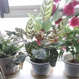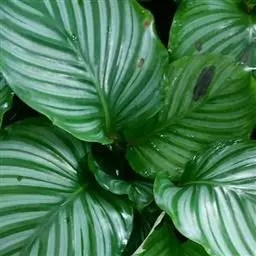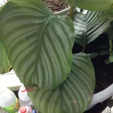 应依据“勤施薄施”的原则,生长旺季每2周施一次花生麸与复合肥的混合肥或腐熟堆肥。肥料的营养成分应以氮肥为主,磷、钾肥次之。由于竹芋为观叶植物,适当增施氮肥,能使叶片色泽更加优美。另外,可用含氮量达46%的尿素配制成0.1%的溶液,加含磷大于50%、含钾大于30%的磷酸二氢钾配制成0.2%的溶液作根外追肥,在早上露水未干时或傍晚施用效果较好。喷施时要用细孔喷雾器把叶片正反两面全喷到,每周喷1次,连续喷施3次后停止1次,然后再连续喷施。特别要注意的是施肥的浓度不宜过大,否则易引起叶片灼伤造成肥害,严重时甚至引起植株枯死。冬季休眠期和夏天太炎热时,要停止施肥。