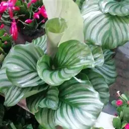 红背卧花竹芋枝叶挺拔,叶面绿色,背面红色,十分耐看,是较好的室内观叶植物。盆栽宜点缀宾馆厅堂、车站…