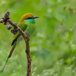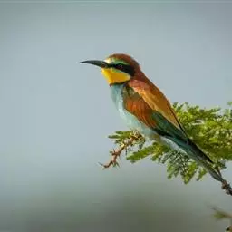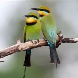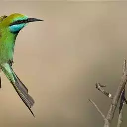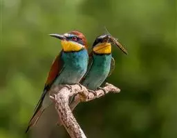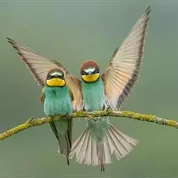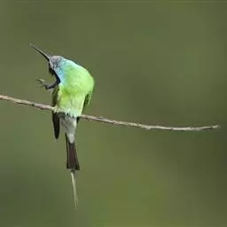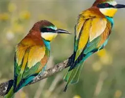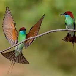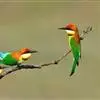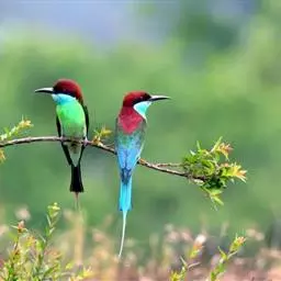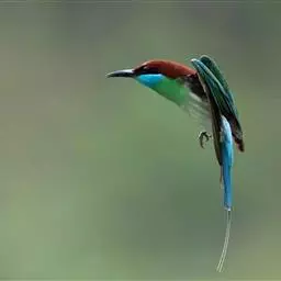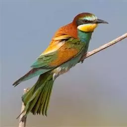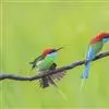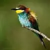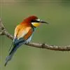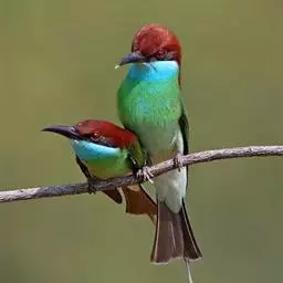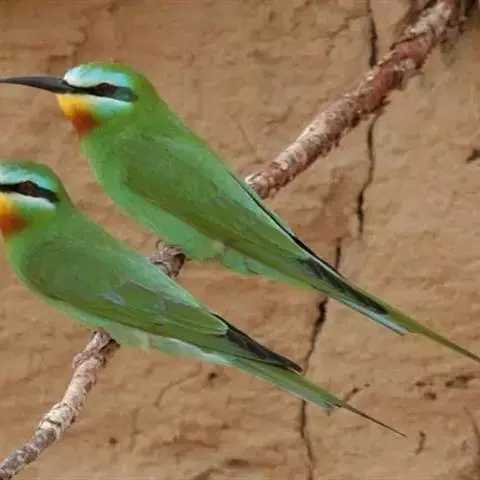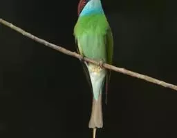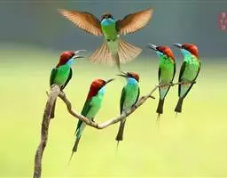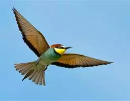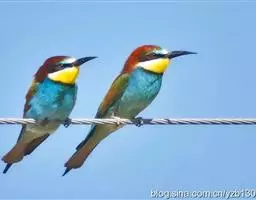 蓝颊蜂虎:是蜂虎科、蜂虎属的鸟类,共有2个亚种。体长27-33厘米,翼展46-49厘米,…