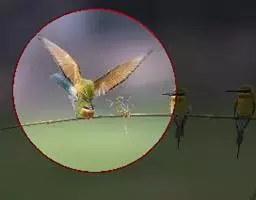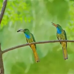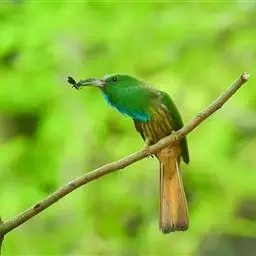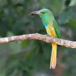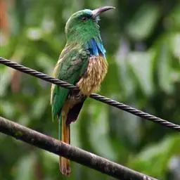 蓝须夜蜂虎是佛法僧目、蜂虎科的鸟类,体长约30厘米,是绿色林栖型蜂虎,蓝色的胸羽蓬松,嘴厚重而下弯…