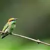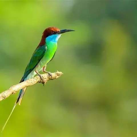 栗喉蜂虎是蜂虎科蜂虎属的鸟类。有热带鸟类羽毛艳丽的特征:喉部是栗红色的,黑色的过眼纹,…