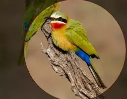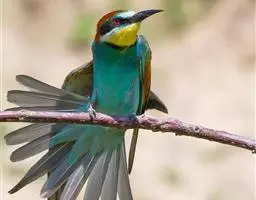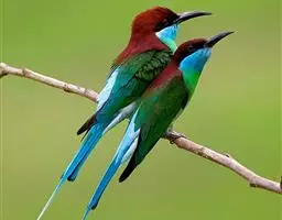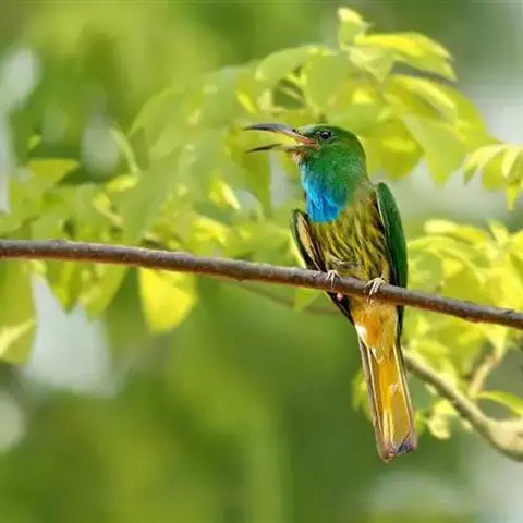 蓝喉蜂是蜂虎科蜂虎属鸟类。体长26-28厘米,嘴长而弯曲,有明显细长的中央尾羽。…