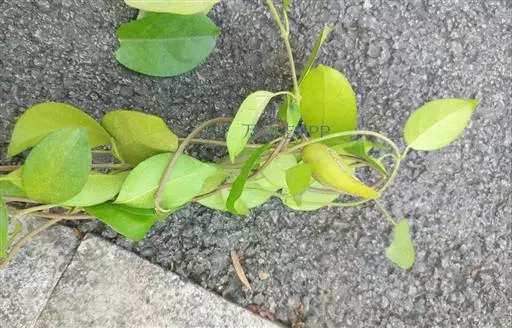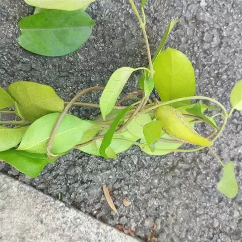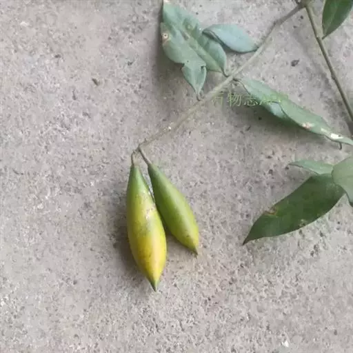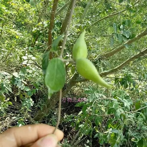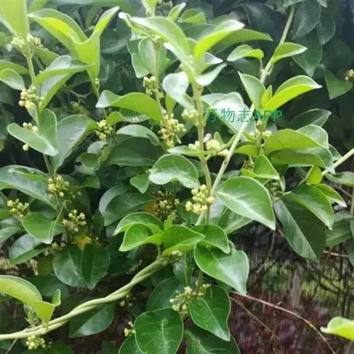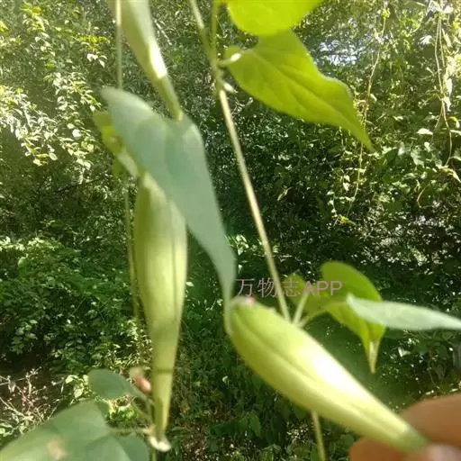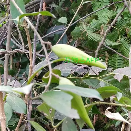木质藤本,长达4米,具乳汁;茎皮灰褐色,具皮孔,幼枝被微毛,老渐无毛。叶倒卵形或卵状长圆形,长3-8厘米,宽1.5-4厘米,仅叶脉上被微毛;侧脉每边4-5条,弯拱上升;叶柄长3-10毫米,被短柔毛,顶端具丛生腺体。聚伞花序伞形状,腋生,比叶为短;花序梗长2-5毫米,被短柔毛;花梗长2-3毫米,纤细,被短柔毛;花小,绿白色,长和宽约2毫米;花萼裂片卵圆形,钝头,被缘毛,花萼内面基部有5个腺体;花冠绿白色,钟状,裂片卵圆形,钝头,略向右覆盖;副花冠着生于花冠裂片弯缺下,厚而成硬条带;雄蕊着生于花冠筒的基部;花药长圆形,顶端具膜片;花粉块长圆形,直立;柱头宽而短圆锥状,伸出花药之外。蓇葖卵状披针形,长5-9厘米,基部宽2厘米,基部膨大,顶部渐尖,外果皮硬,无毛;种子卵圆形,薄而凹陷,顶端截形或钝,基部圆形,有薄边,顶端轮生的种毛白色绢质;种毛长3.5厘米。花期5-9月,果期10月-翌年1月。