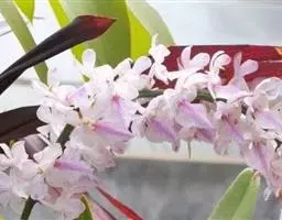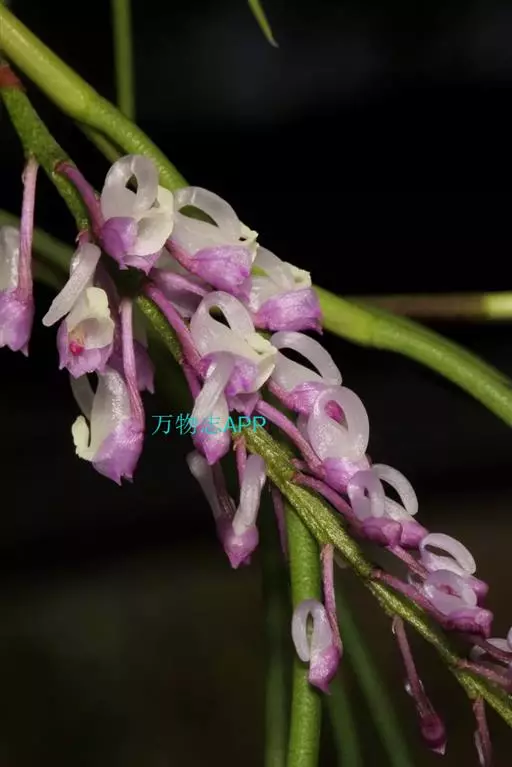 白柱万代兰兰科:万代兰属附生草本植物。茎长可达15厘米,叶带状,花序出自叶腋,不分枝,疏生朵花;花…