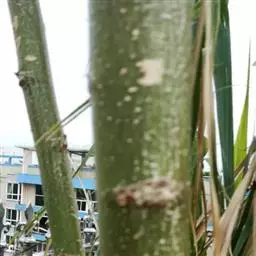 插后管理:插后搭遮荫棚。用竹片在苗床侧弯曲成弓型,做成高80厘米的拱型架,四边压实,插前两周内棚内相对湿度保持在90%左右,地温控制在20-25℃左右,温度过高时要适当通风,注意观察,作好保温、保湿、除病工作。待竹眼长出竹叶后,将遮光网两头揭去,使棚内通风,使幼苗逐渐适应外面环境,以后逐步揭去遮光网,增强光照。这时最好施一次浓度0.1-0.2的速效氮肥,促进根系发达及竹苗生长,翌年3-4月份即可移植造林。
