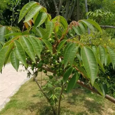 落叶灌木或小乔木,高可达10米。树皮灰褐色,初平滑后呈纵裂。单数羽状复叶,多聚生于枝顶;小叶9~1…