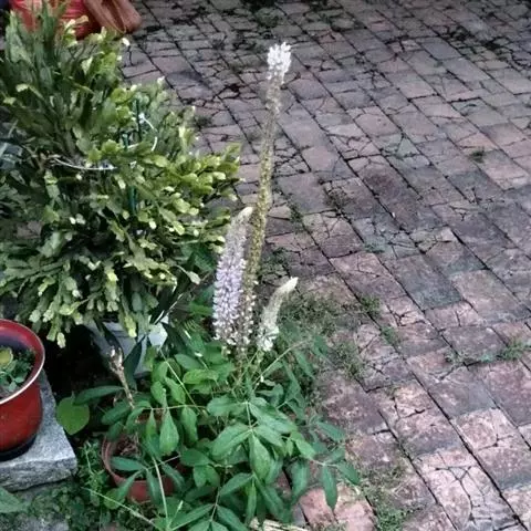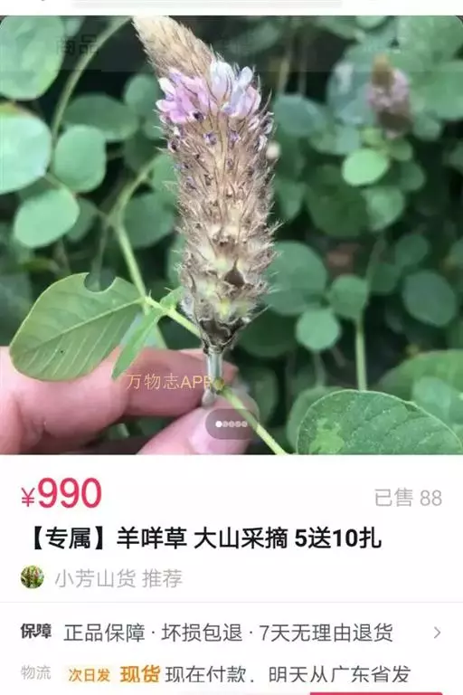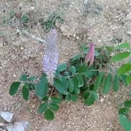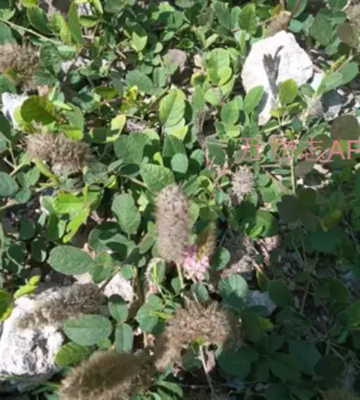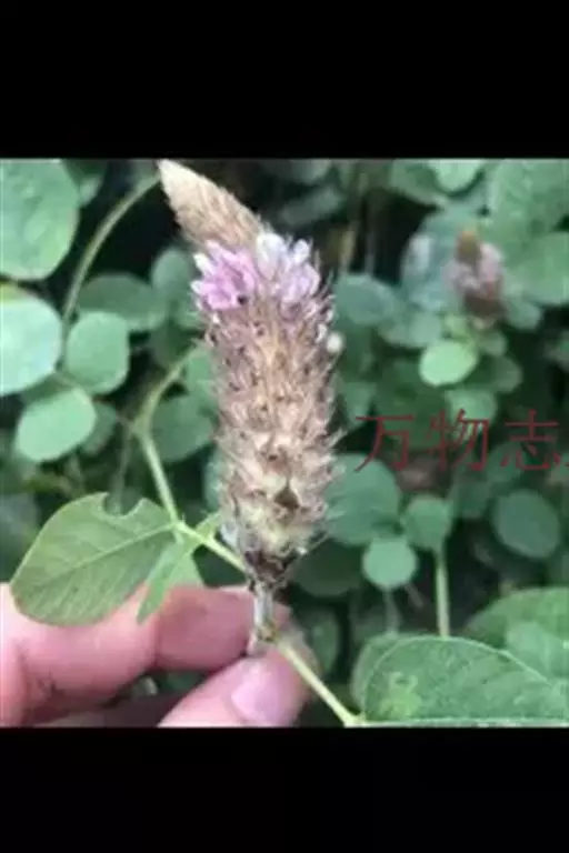 总状花序顶生,长3-6厘米,直径1.5-2厘米,花排列紧密;苞片宽卵形,长8-10毫米,先端锥尖,密被灰色毛和缘毛,开花时脱落;花梗长4毫米,疏被白色长柔毛;花萼5裂,上部二裂片三角形,较短,长约2毫米,下部3裂片刺毛状,较上部裂片长3倍以上,被白色长柔毛,萼筒长约1毫米;花冠长约6毫米,淡紫色,旗瓣倒卵形,基部渐狭;雄蕊二体;子房无毛,有胚珠1-2。