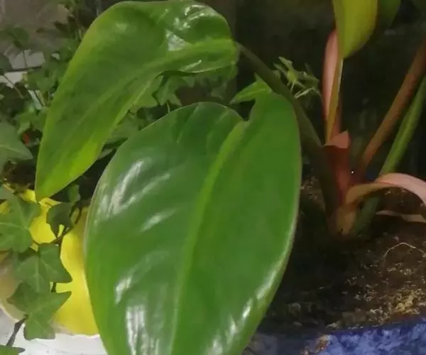 红苞喜林芋( Philodendron erubescens C. Koch et Angustim),广州栽培,原产哥伦比亚,为美丽的观赏植物。