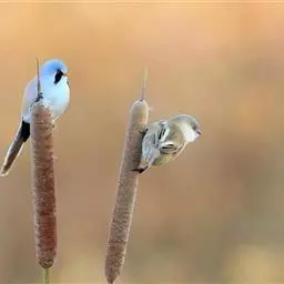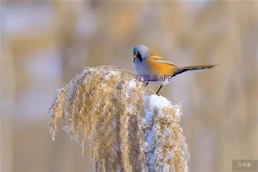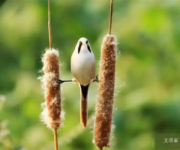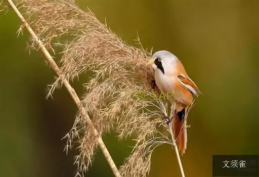 文须雀(学名:Panurus biarmicus),小型鸟类,体长15-18cm。嘴黄色、较直而尖,脚黑色。上体棕黄色,翅黑色具白色翅斑,外侧尾羽白色。雄鸟头灰色,眼先和眼周黑色并向下与黑色髭纹连在一起,形成一粗著的黑斑,在淡色的头部极为醒目。下体白色,腹皮黄白色,雄鸟尾下覆羽黑色。食物主要为昆虫、蜘蛛和芦苇种子与草子等。通常营巢于芦苇或灌木下部,也在倒伏的芦苇堆上或旧的芦苇茬上面营巢。