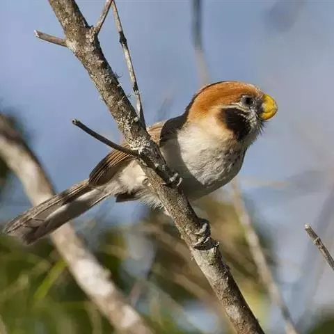 褐翅鸦雀是莺科、鸦雀属小型鸟类,体长11-13厘米。嘴短而粗厚、似鹦鹉嘴,头、后颈和颈侧栗红色。…