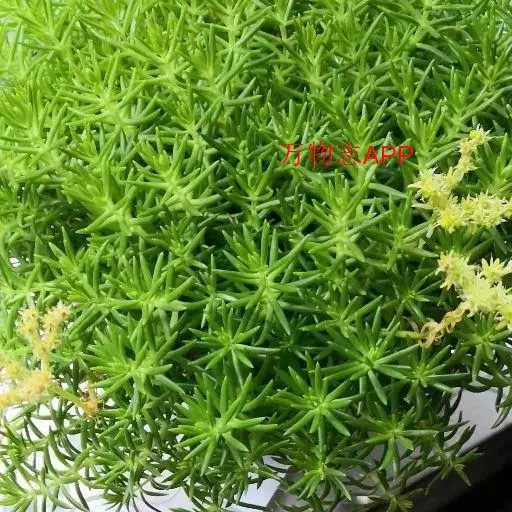 薄雪万年草别名矶小松,景天科景天属多年生草本植物,其细小的蓝绿色棒状叶片环绕生长于茎端,…