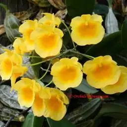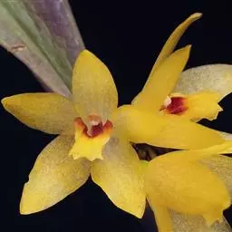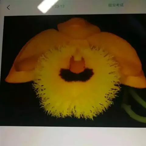 独角石斛,Dendrobium unicum,兰科石斛属植物。花瓣橙黄色,唇瓣反转似犀牛角,…