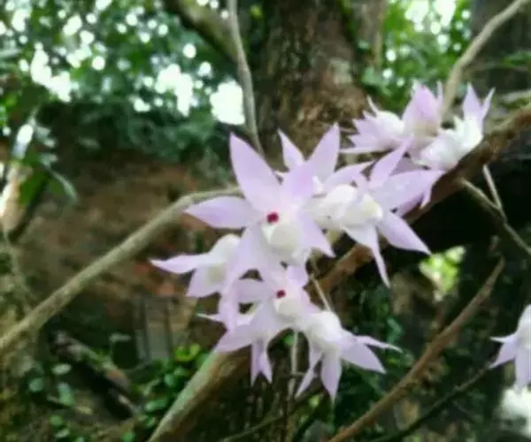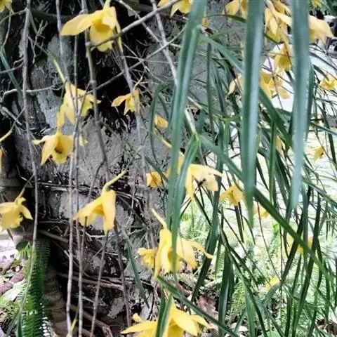 束花石斛是兰科石斛属植物。茎粗厚,肉质,下垂或弯垂,圆柱形,不分枝,具多节。叶二列,互生于整个茎上,…