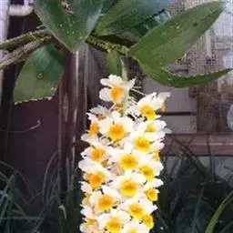 球花石斛,是兰科石斛属的多年生附生草本。茎直立或斜立,圆柱形,粗壮,基部收狭为细圆柱形,不分枝,…