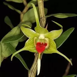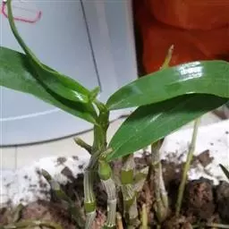 重唇石斛:茎下垂,圆柱形或有时从基部上方逐渐变粗,具少数至多数节。叶薄革质,狭长圆形或长圆状披针形。…