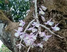 钩状石斛是一种喜阴凉的多年生草本植物,喜在温暖、潮湿、以年降雨量1000毫米以上、半阴半阳的环境,1月平均气温高于8℃的亚热带深山老林中生长为佳,适宜生长温度为15到28度,适宜生长空气湿度为60%以上,对土肥要求不甚严格,野生多在疏松且厚的树皮或树干上生长,有的也生长于石缝中。属气生根系,主要要求根部通透性好,采用的基质最好能通风透气滤水,在适宜的温度湿度下,生长速度快,生存能力非常强。每年春末夏初,二年生茎上部节上抽出花序,开花后从茎基长出新芽发育成茎,秋冬季节进入休眠期。
