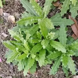 中部茎叶长椭圆形或卵状长椭圆形,长4-10厘米,宽2.5-4.5厘米,边缘有大锯齿或圆锯齿,下部沿叶柄下延成具翅的叶柄,柄基扩大贴茎;基生叶及茎下部的叶较大,间或浅裂或深裂,而侧裂片1-2对,极少有3对的,叶柄长达10厘米;上部茎叶渐小,长椭圆形或长披针形,渐无柄,基部扩大贴茎或耳状扩大抱茎,接花序下部的叶边缘有小齿或无齿;全部叶上面无毛,下面沿脉有极稀疏的短柔毛。