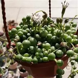 翡翠珠,是菊科千里光属的多年生常绿肉质草本植物。茎纤细,全株被白色皮粉;叶互生,较疏,圆心形,深绿色,…