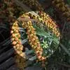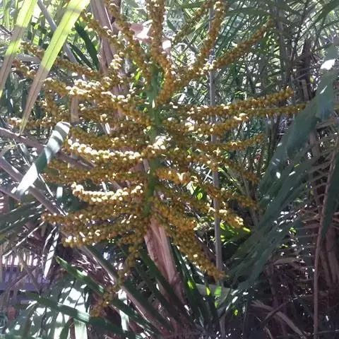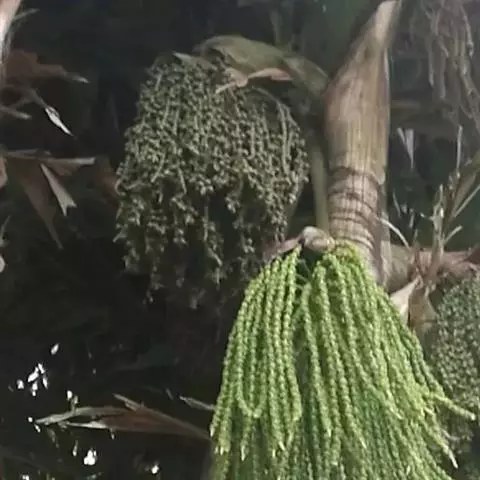 花序长达1.5米,多分枝,佛焰苞在开花前象l根垒球棒;花小,雌雄同株,雄花长6-7毫米,雄蕊6,与花瓣等长,雌花长约为雄花之半。