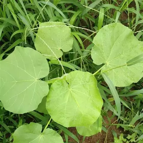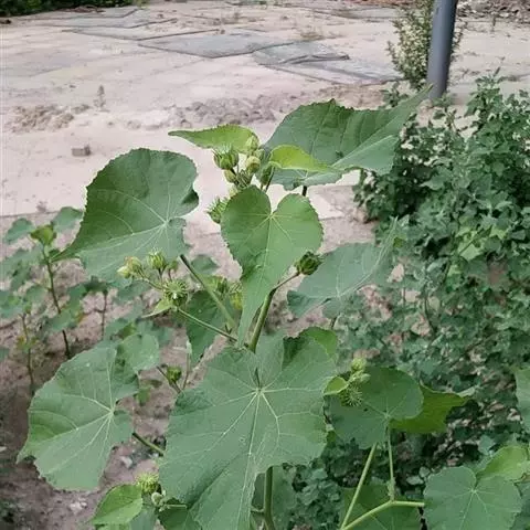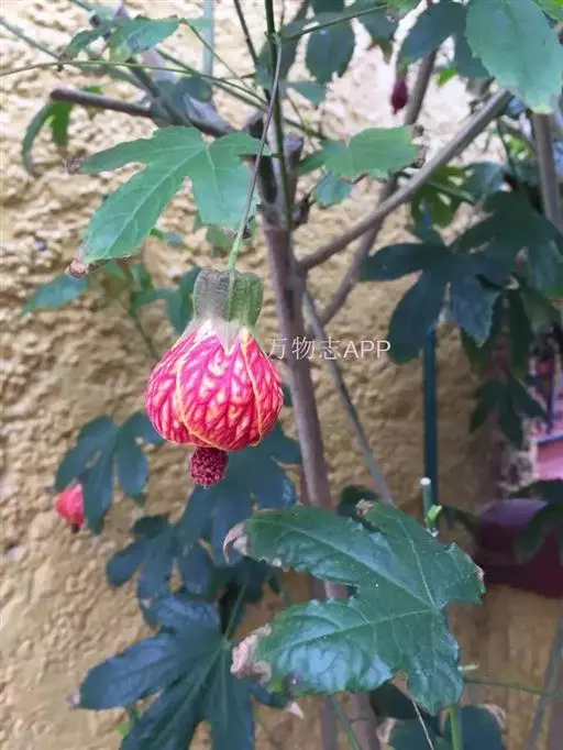 扦插繁殖的2年生金铃花株高可达2米左右,主茎直径2一3厘米.茎呈灰绿色,多年生植株的茎呈灰色或灰褐色。春季萌发新梢的能力非常强,枝条萌生于叶腋,当年生枝条呈翠绿色,木质化程度较低,枝条柔软。金铃花的叶片有两种,一种是卵圆形,长10厘米,具长叶柄,整个叶柄粗细均匀;另一种是掌状,12一18厘米。叶片排列呈轮生状态,为4一9片叶一轮。在光线好的地方或是健壮的植株,叶片一般为掌状,在光线差的地方或是长势稍弱的植株,叶片为卵圆形。