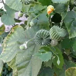 • 咖啡黄葵 Moench)亦称黄秋葵,是锦葵科一年生草本植物。茎圆柱形,疏生散刺。叶掌状,裂片阔至狭,…