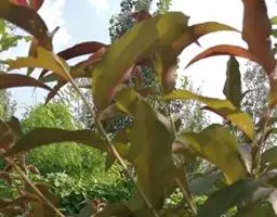 紫叶桃花是李亚科,桃属植物桃的变种,叶为窄椭圆形至披针形,长15厘米,宽4厘米,先端成长而细的尖端,…