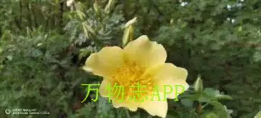 单瓣黄刺玫 是栽培黄刺玫的原始种。直立灌木,高2-3米;枝粗壮,密集,披散;小枝无毛,有散生皮刺,无针刺。小叶7-13,连叶柄长3-5厘米;小叶片宽卵形或近圆形,稀椭圆形,先端圆钝,基部宽楔形或近圆形,边缘有圆钝锯齿,上面无毛,幼嫩时下面有稀疏柔毛,逐渐脱落;叶轴、叶柄有稀疏柔毛和小皮刺;托叶带状披针形,大部贴生于叶柄,离生部分呈耳状,边缘有锯齿和腺。