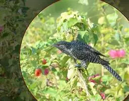 画眉给红翅凤头鹃喂食(汤太平摄影)