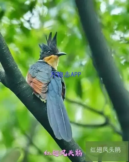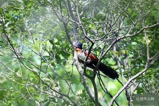 红翅凤头鹃:体长约38厘米,顶冠及凤头黑色,具显眼的直立凤头,背及尾黑色而带蓝色光泽,翅栗红色,…
