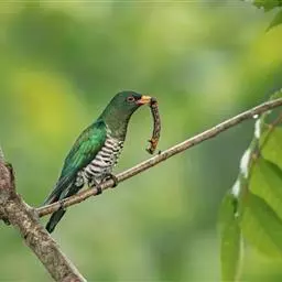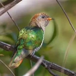 翠金鹃体长约17厘米,雄鸟上体辉绿色,头至背缀有很多棕栗色,…