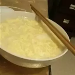 2萝卜用擦子擦成丝,放入水中泡洗一下,捞出控净水备用