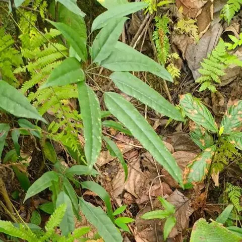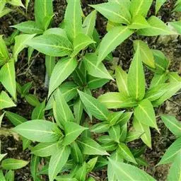多年生草本;具根茎,侧根肉质增厚。茎高20-40厘米,微粗糙,节稍膨大。叶对生,无柄或几无柄;叶片矩圆状披针形,长4-18厘米,宽1.5-3厘米,顶端渐尖,基部狭楔形,侧脉7-9对,上面无毛,下面脉上被微毛,边缘具钝齿或微波状。