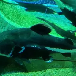 巨骨舌鱼(学名:Arapaima gigas):是巨骨舌鱼属(Arapaima)的物种,亦称海象鱼。成鱼体长可达2-6米,重可达100千克。体形巨大,长形,稍侧扁。头部骨骼由游离的板状骨组成。口大,无须。无下颌骨,舌上有坚固发达的牙齿。鳔四周富有血管,内表呈蜂窝状,常有特殊的鳃上器。鳞片大且硬,呈嵌镶状。背鳍和臀鳍位于体的后部,互为相对。胸鳍位低。腹鳍位腹部之后。尾鳍圆形。体灰绿色,背部颜色深,腹部较淡,尾鳍及体后部红色。