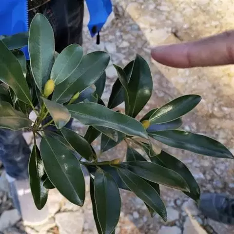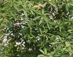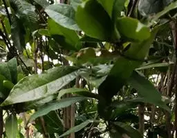 乐东拟单性木兰 常绿乔木,高达30米,胸径30厘米,树皮灰白色;当年生枝绿色。叶革质,狭倒卵状椭圆形、倒卵状椭圆形或狭椭圆形,长6-11厘米,宽2-3.5 (-5) 厘米,先端尖而尖头钝,基部楔形,或狭楔形;上面深绿色,有光泽;侧脉每边9-13条,干时两面明显凸起,叶柄长1-2厘米。