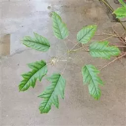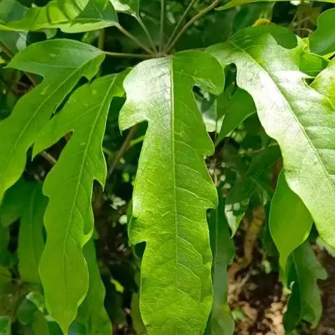 叶有小叶6~9,最多至11;叶柄长15~30厘米,疏生星状短柔毛或无毛;小叶片纸质至革质,椭圆形、长圆状椭圆形或倒卵状椭圆形,稀椭圆状披针形,长9~17厘米,宽3~5厘米,幼时密生星状短柔毛,后毛渐脱落,除下面沿中脉和脉腋间外均无毛,或全部无毛,先端急尖或短渐尖,稀圆形,基部渐狭,楔形或钝形,边缘全缘,但在幼树时常有锯齿或羽状分裂,侧脉7~10对,下面微隆起,网脉不明显;小叶柄长1.5~5厘米,中央的较长,两侧的较短,疏生星状短柔毛至无毛。