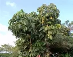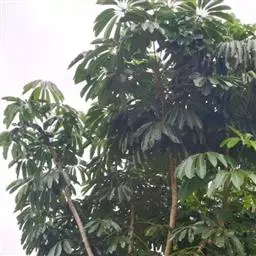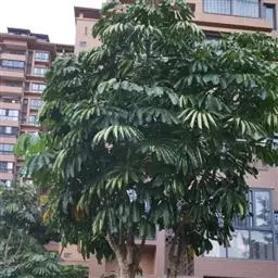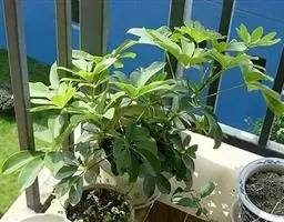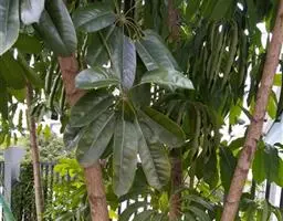 昆士兰伞木,吕松鹅掌柴 ,称昆石兰遮树,澳洲鸭脚木、方式叶鹅掌柴、伞树、大叶伞。叶片阔大,柔软下…