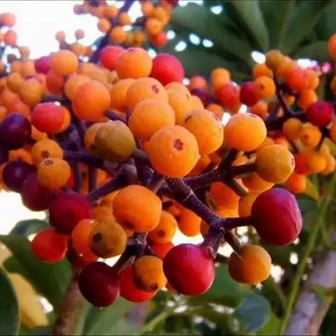 于1月份后采收黑色球形浆果,用细沙拌和后搓揉去果皮果肉,再用清水漂洗去空瘪种粒,即可得到干净饱满的种籽,可行随采随播,也可先行沙藏催芽,等种粒裂口露白后,再行盆播或地播。用腐叶土或沙土盆播,覆土深度约为种子直径的1~2倍。种子发芽适温为20~25 ℃,保持盆土或苗床湿润,随采随播者在适宜的温度条件下,约15~20 天即可出苗,经沙藏催芽后再行播种者,在适温下一周后即可出土。生长良好。出苗后应及时搭棚遮荫,秋季给予全光照,冬季加盖地膜防寒,只要苗床局部空间的环境温度不低于5 ℃,一般可平安过冬。留床培育一年,再行扩距移栽,或直接用于上盆。