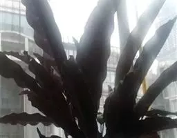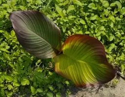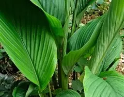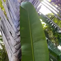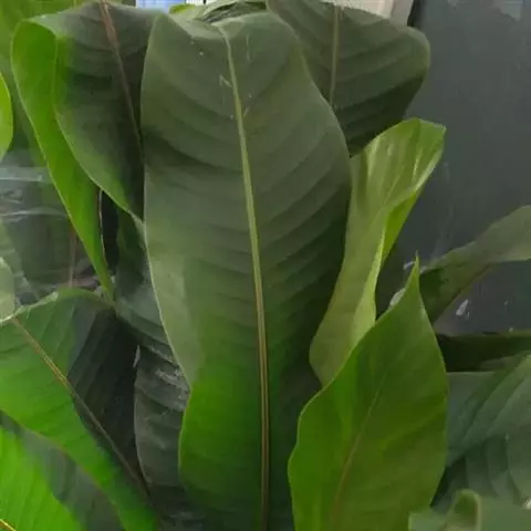 茎干高达8米,木质。叶片长圆形,长90-120厘米,宽45-60厘米,基部圆形,不等侧;叶柄长1.8米。