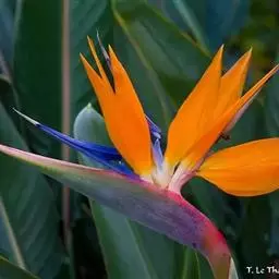 鹤望兰,别名天堂鸟,为鹤望兰科鹤望兰属的一种多年生草本植物;无木质树干;花序生于与叶柄近等长或稍短的花序梗上,佛焰苞1;花较小,萼片橙黄色,长7.5-10厘米,箭头状花瓣基部具耳状裂片,暗蓝色;花期在冬季。该物种原产非洲南部,在中国南方大城市的公园、花圃有栽培,北方则为温室栽培。性喜温暖湿润、阳光充足的气候,适宜生长的温度为25℃左右,耐干旱、较耐寒、不耐水湿,要求疏松肥沃、排水良好,以土层深厚的沙壤土为宜。因花形美丽似鹤,花开时犹如仙鹤翘首远望,花朵寿命亦长,故中文名为鹤望兰。鹤望兰素有“鲜切花之王”的美誉,是一种名贵的观赏花卉,深受广大消费者喜爱。同时,鹤望兰也宜大盆栽植,布置在公园、客厅、会议室、展厅候机室等处。鹤望兰是美国洛杉矶市的官方花卉象征。