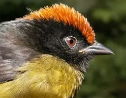 凤头雀嘴鹎:属小型鸟类,体长18-22厘米。嘴粗短、呈象牙色或乳黄色,前额和脸灰色,头顶黑色,…