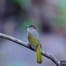 黄腹冠鹎:体长19-24厘米,是一种体型略大的褐色鹎。头顶橄榄褐色具黑褐色羽冠。白色的喉膨起,…