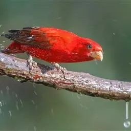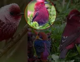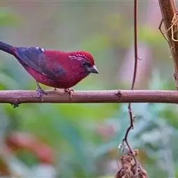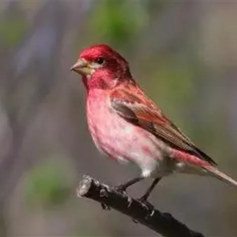 酒红朱雀小型鸟类,体长13~15厘米。雄鸟通体深红色,头部深朱红或棕红色,下背和腰玫瑰红色,…
