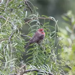 红腰朱雀:体长12-14厘米,小型鸟类。雄鸟前额和眉纹玫瑰粉红色,头顶和一宽的贯眼带深红褐色,背红…