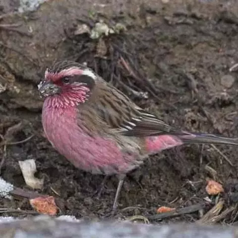 粉红腹岭雀:为燕雀科岭雀属的鸟类。体重25-34克,体长150-182毫米。是一种中等体型的深色岭雀。…