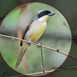 虎纹伯劳 俗名:粗嘴伯劳、厚嘴伯劳、虎花伯劳、三色虎伯劳。