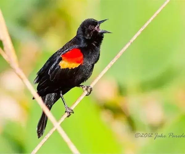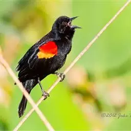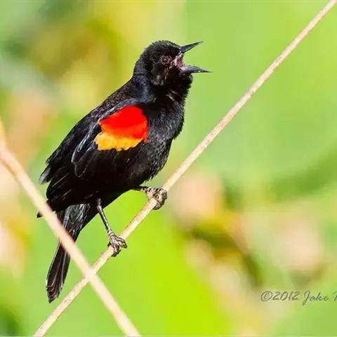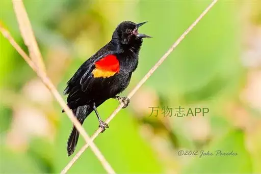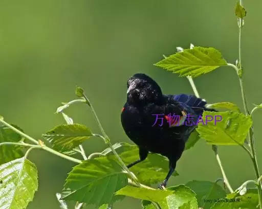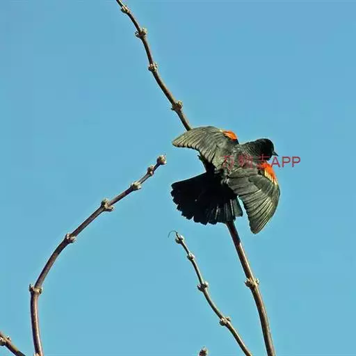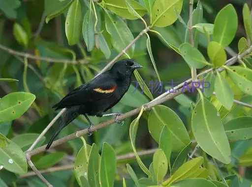 红翅黑鹂,是美洲黑鸟中最出名的是红翅黑鸟,体长19-24厘米,翼展30-37厘米,体重65克,春天雄鸟羽色翅膀上端橘红色连带小块白色,似大帅的红色肩章,头部及爪呈深蓝光泽,所有的羽毛都呈蓝黑色,因雄鸟肩翅呈现鲜艳的红色而得名。秋天羽毛边缘会变成锈色,大都生活在北美沼泽地带。