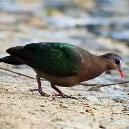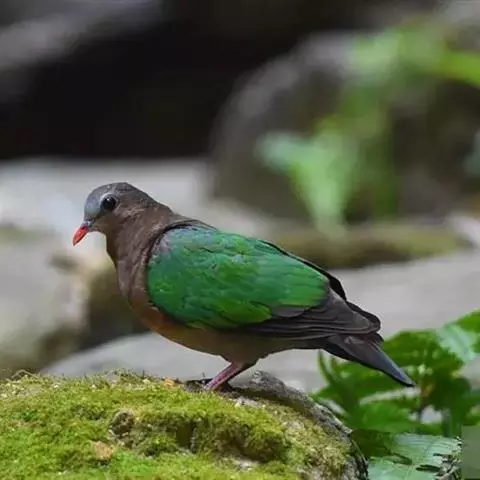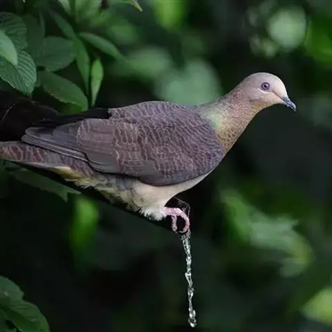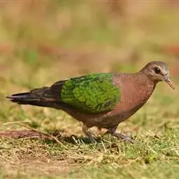 绿背金鸠体长约25厘米,是中等体型、尾甚短的地栖型斑鸠。下体粉红,头顶灰色,额白,腰灰,两翼具亮绿色。…