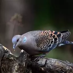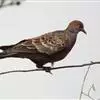 欧斑鸠体长27厘米,是一种体型略小的粉褐色斑鸠。颈侧具多黑白色细纹的斑块,翼覆羽深褐,…