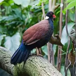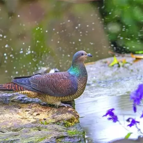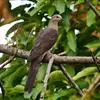 斑尾鹃鸠体长38厘米,是体大而尾长的褐色鹃鸠。背及尾满布黑色或褐色横斑。头灰,颈背呈亮蓝绿色。胸偏粉,…